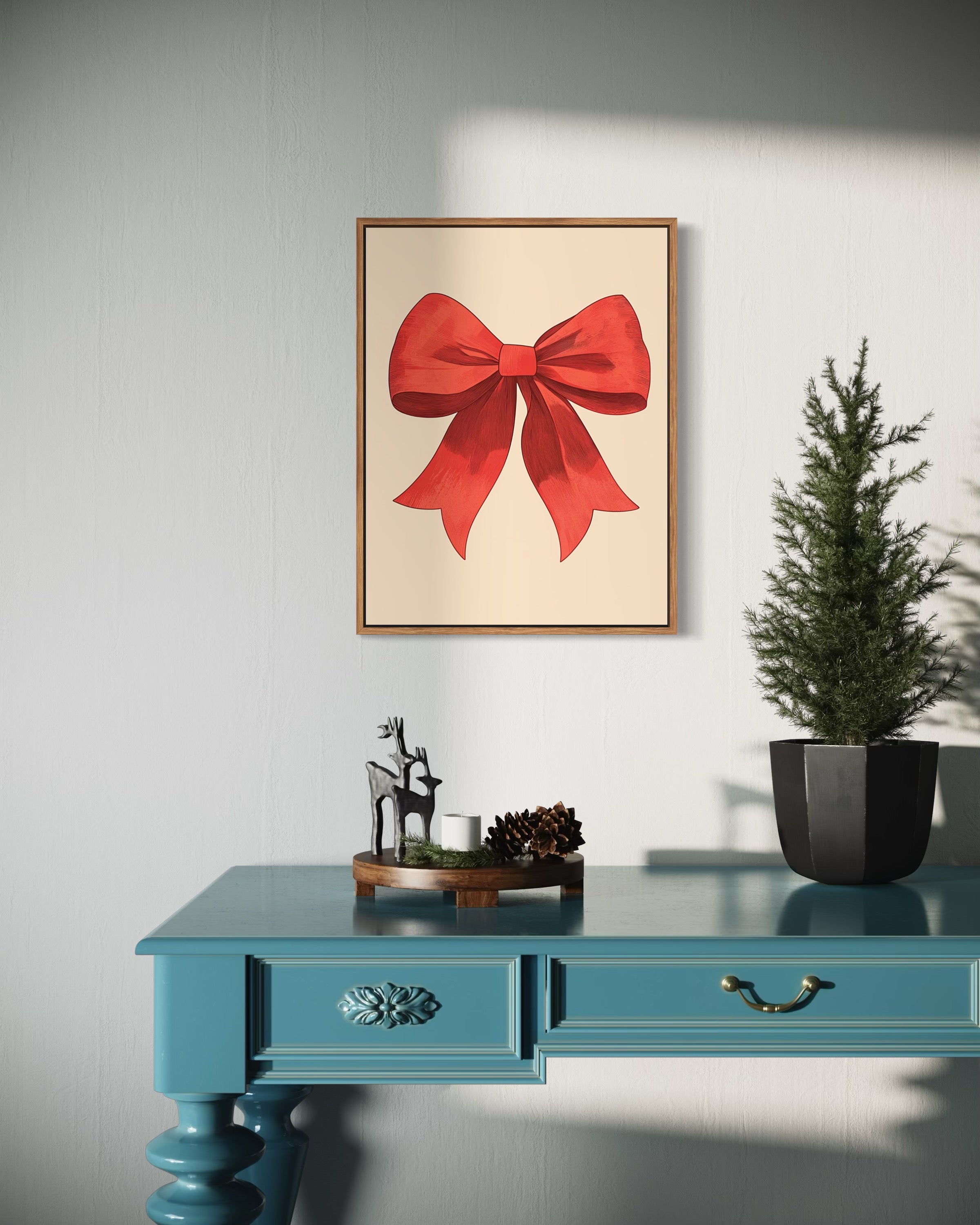 A classic symbol of festive joy: the bright red ribbon. Gently textured areas of color lend the design depth and nostalgic warmth. Elegant, simple, and full of Christmas spirit.