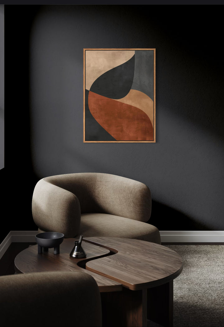 Abstract planes in warm earth tones overlap in harmonious balance. Rust & Shadows No. 3 exudes tranquility, strength, and subtle sensuality. A statement of modern simplicity.