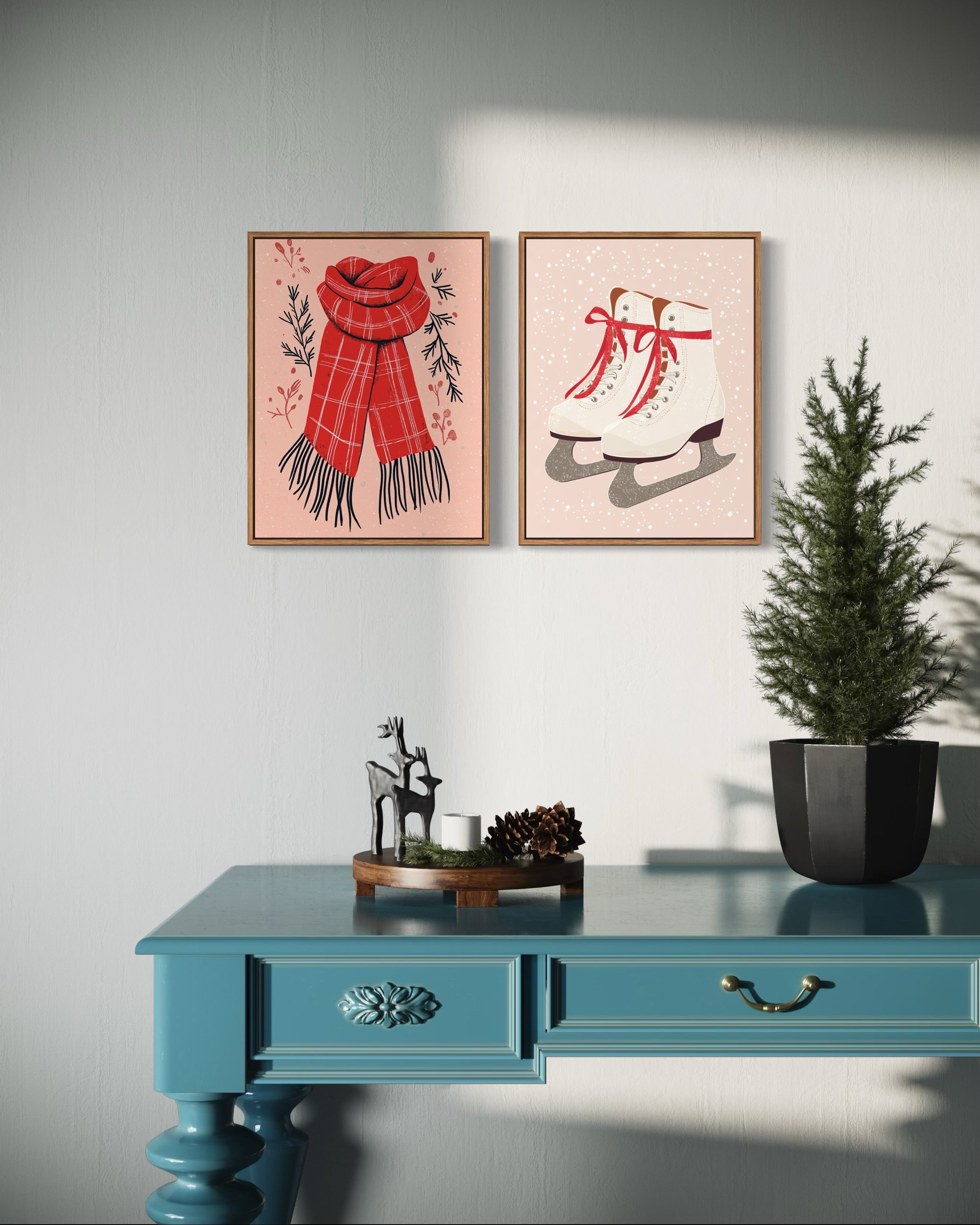Two white ice skates with red ribbons evoke memories of winter days filled with lightness and nostalgia. A charming motif for all who love the magic of frozen lakes.