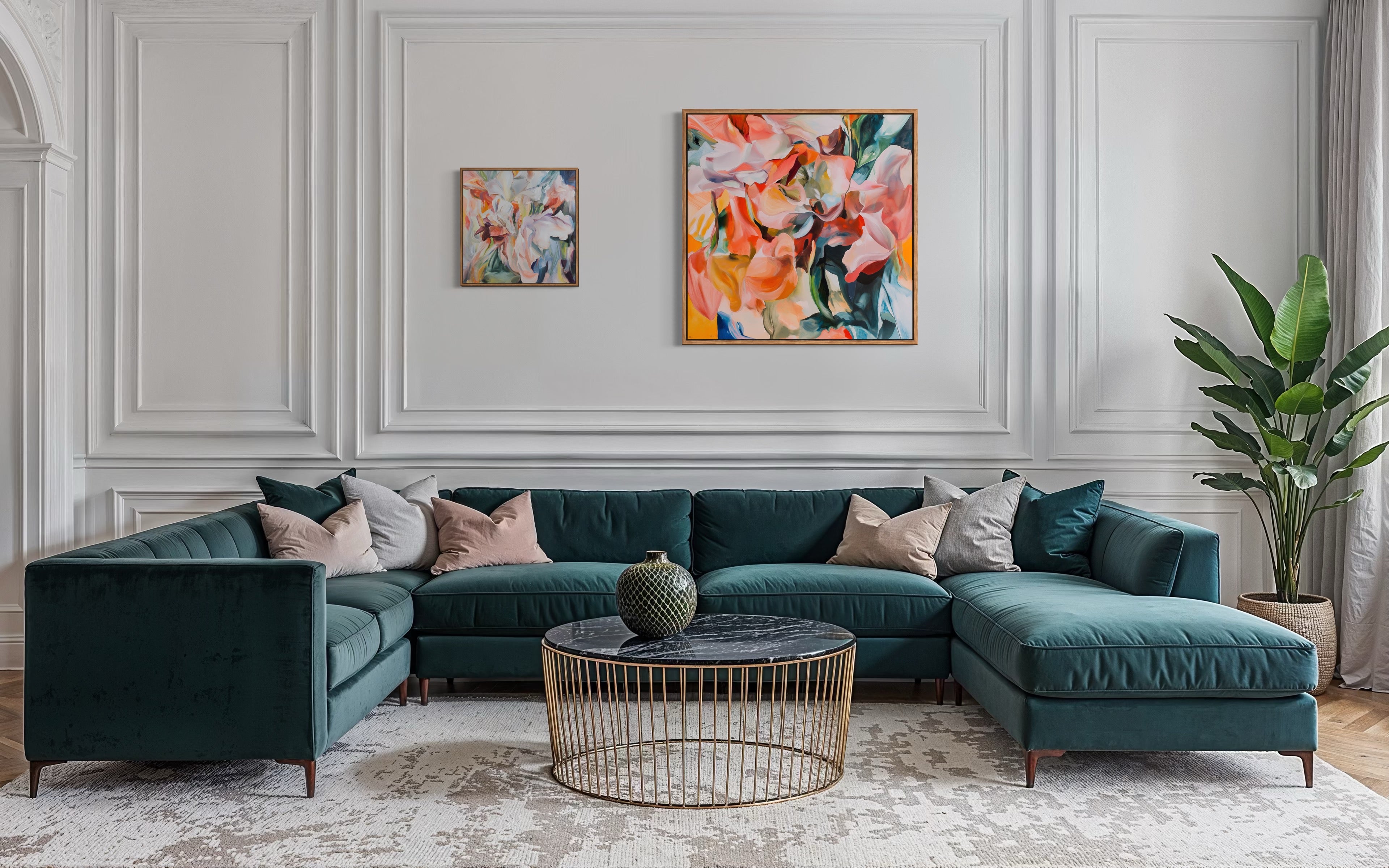 Farben: Koralle, Grün, Terrakotta, Elfenbein