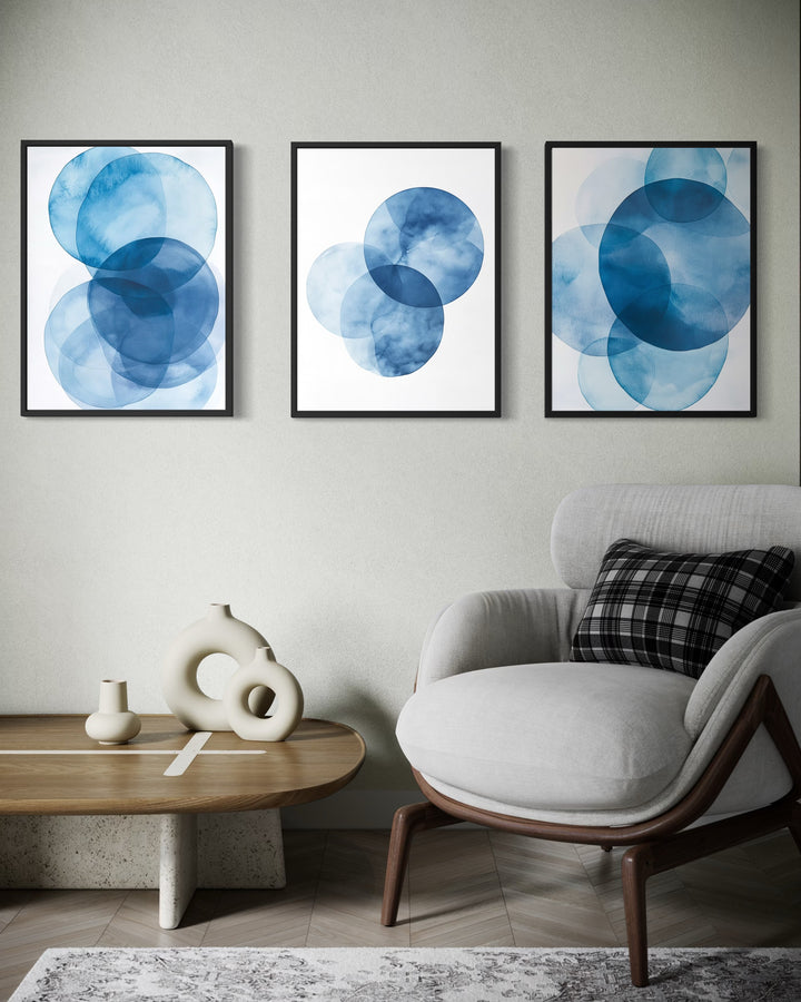 Kühle Blautöne in sanften, kreisförmigen Übergängen erzeugen ein Gefühl von Klarheit und Tiefe. Silent Waters No. 1 erinnert an die Spiegelung des Himmels auf ruhigem Wasser, meditativ und modern.